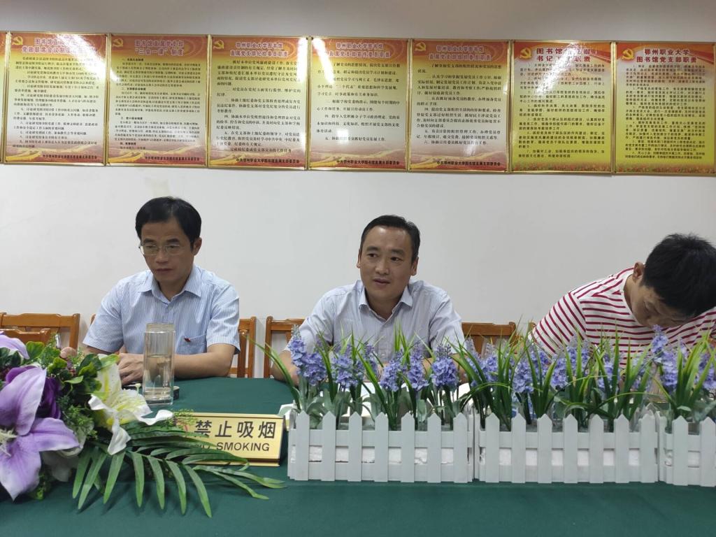 在9月份的支部主题党日活动中,全体党员首先集中学习中央、省委、鄂州市委“不忘初心、牢记使命”主题教育工作部署及会议精神;然后,宋其湖馆长作了题为“学深悟透新思想,实干展现新作为”的学习交流体会。这是宋馆长在参加完鄂州市市委党校和鄂州职业大学“不忘初心、牢记使命”主题教育读书班学习之后的所思所悟,他抛砖引玉做了首次的主题交流,会上,他强调:主题教育学习已经在全市、全校展开了,我们要按照学校的要求,学深悟透,学以致用。下一次会上支委成员将做交流学习。