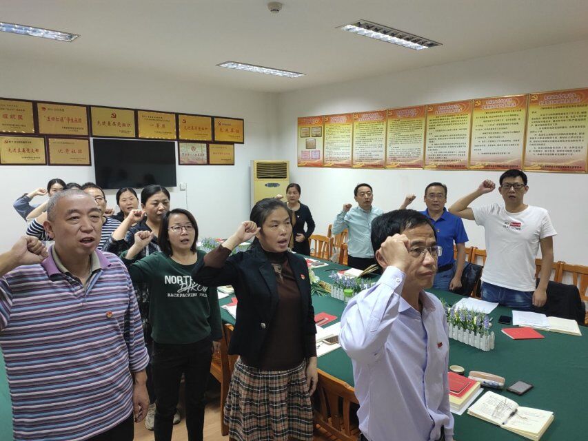 本次主题党日活动严格按照3+X的方式进行,第一环节,由宋其湖同志带领全体党员在党旗下重温入党誓词;颜斌同志带领全体党员诵读了新《党章》总纲第12~14页内容;组织委员洪佳平同志通报了本月党费缴纳情况;纪检委员邵晓红同志通报了本月馆内“三公开”情况。