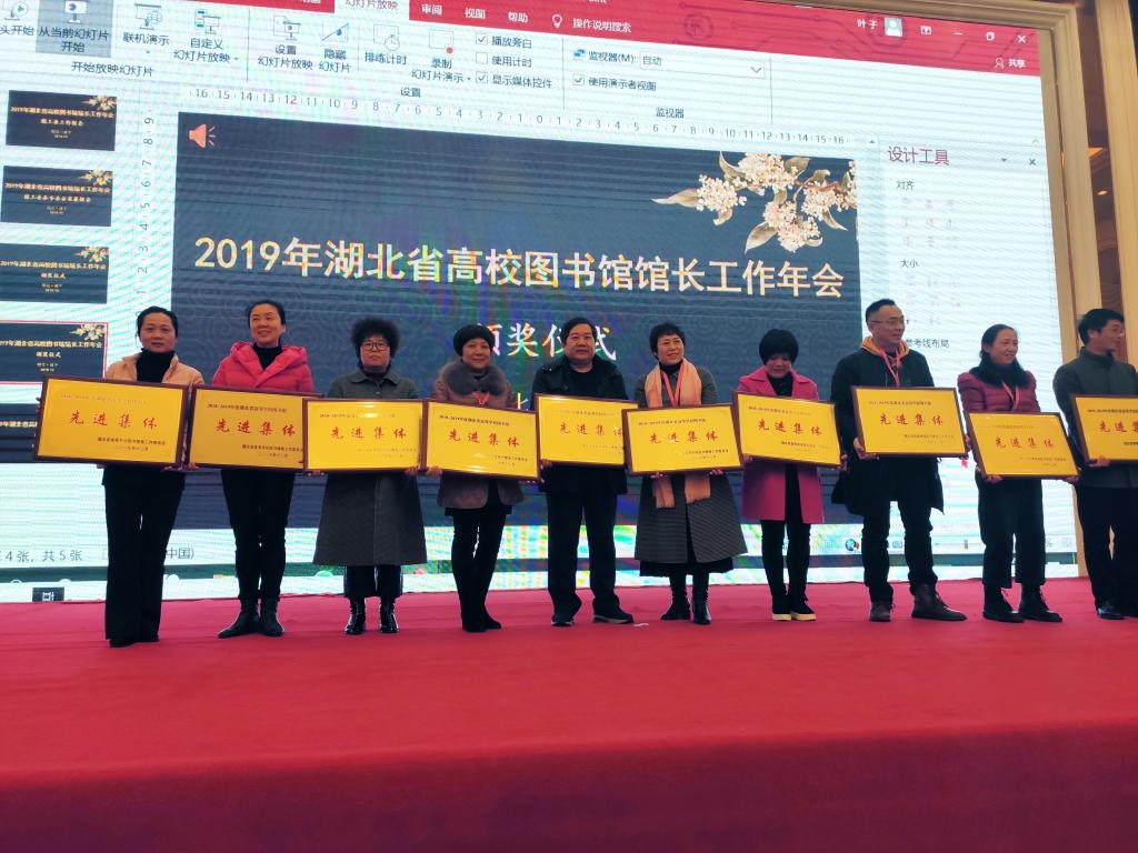 在2018~2019年度湖北省高等学校图书馆先进集体和特色创新单项奖评选中,我校图书馆荣获“先进集体”荣誉称号。