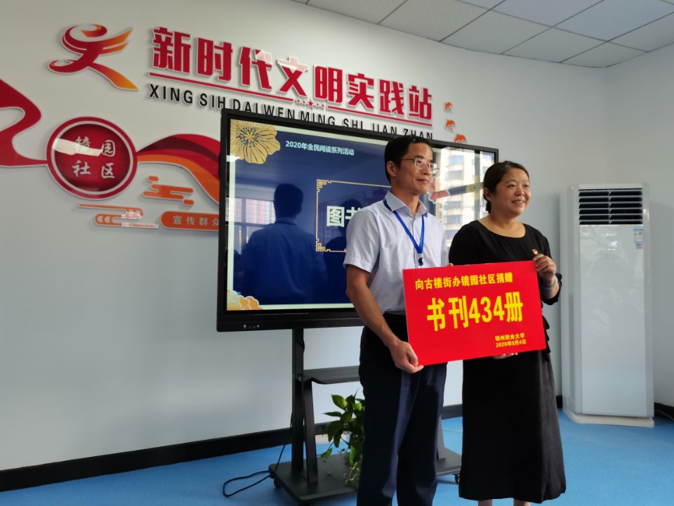 最后举行了纸质书刊捐赠仪式,鄂州职业大学图书馆和鄂州市新华书店分别为镜园社区捐赠了实用、时尚的纸质图书和杂志。