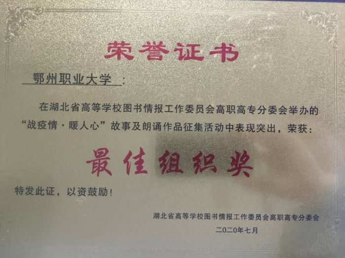与此同时,我校鄢宁、徐晓琼老师的作品均荣获三等奖,我校荣获最佳组织奖。此次获奖为2020年疫情后我校参加湖北省高校图工委活动的首次获奖,极大增强了老师们防疫与复工复学的信心。