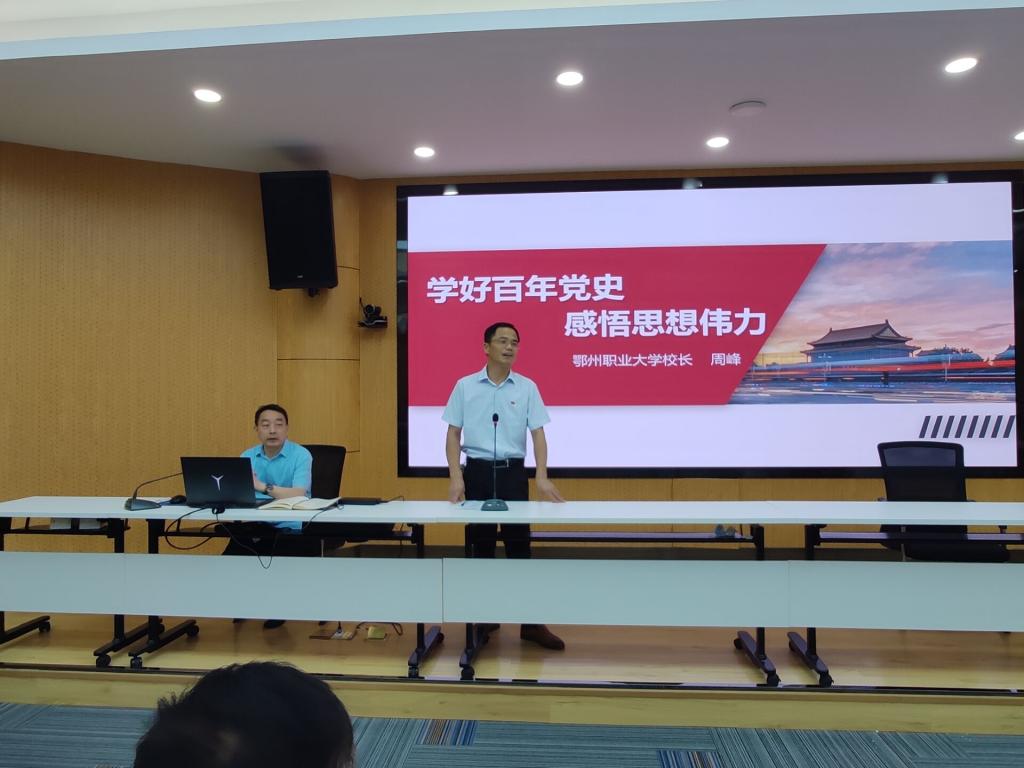 6月10日上午,鄂州职业大学图书馆联合审计处在图书馆一楼学术报告厅2会议室开展了第三次专题党史学习及交流活动。鄂州职业大学校长周峰同志作为图书馆直属支部党员,以《学好百年党史 感悟思想伟力》为题,给大家分享了学习党史的心得体会。活动由图书馆书记、馆长、审计处处长宋其湖同志主持。图书馆全体馆员和审计处全体成员参加了此次活动。