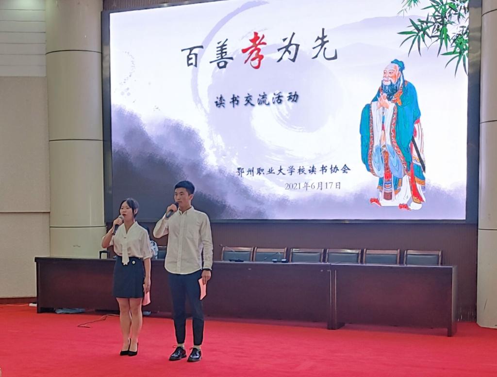 6月17日下午,校读书协会在图书馆二楼学术报告厅,开展了“百善孝为先”为主题的读书交流活动。读书协会全体成员、其它社团代表及图书馆领导老师等200余人参加了本次活动。本次读书交流由图书馆采编部汪慧芳主任指导,读书协会安胜发、邓荣燕同学主持。