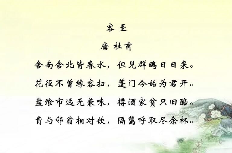 喜、怒、哀、乐、怨五种人生情感,那么唐诗里的五情五味是怎样体现的呢?我们来欣赏《客至》这首诗。