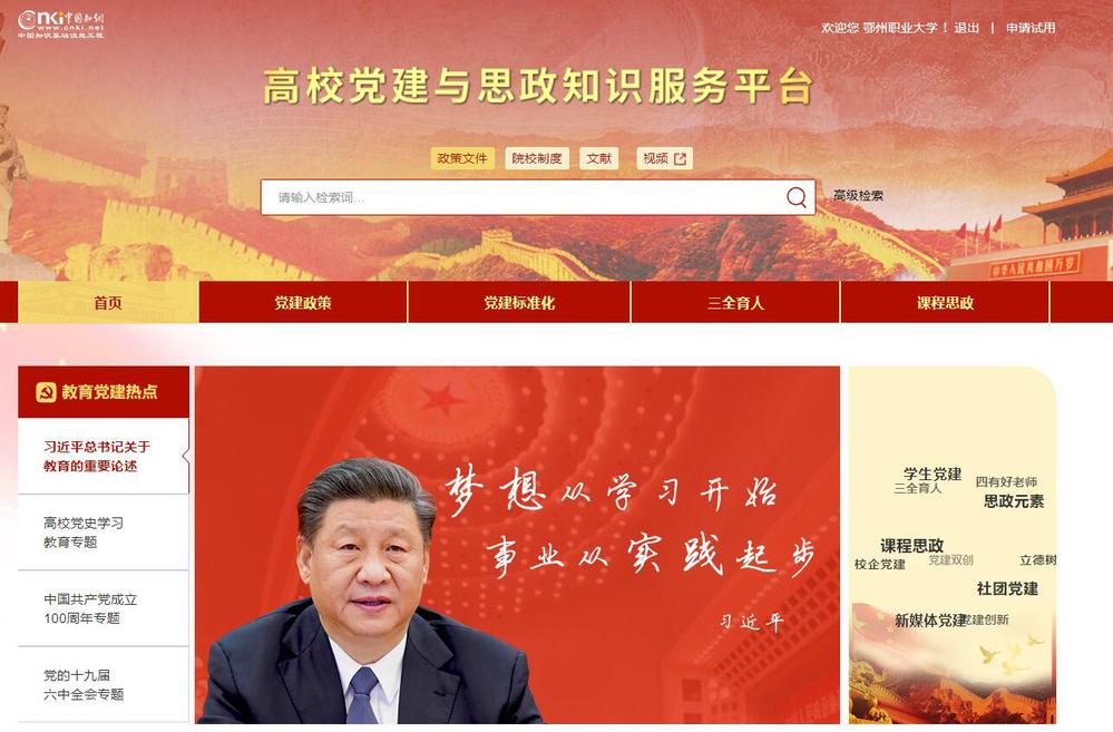 平台介绍:依托知网全面权威知识资源,为高等院校的教育党建政策研究、高校党建标准化任务分解与落实、三全育人工作、思政课程与课程思政建设等提供所需的知识情报与经验案例。