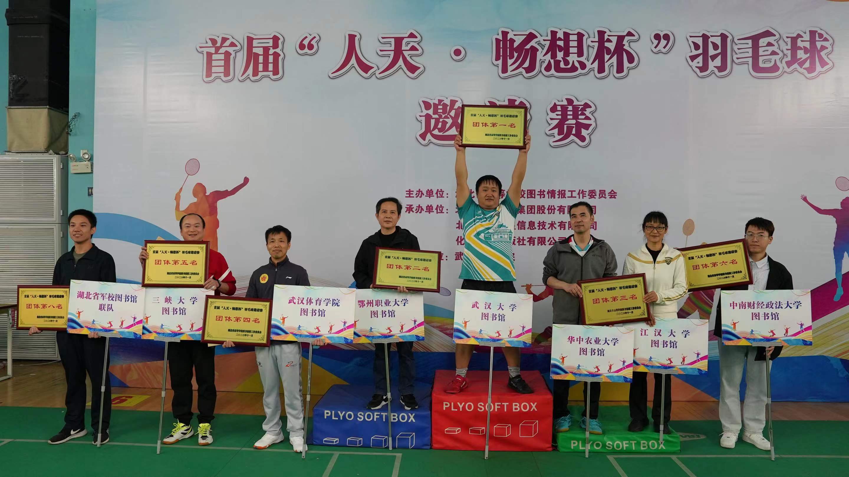1111日,湖北高校图书馆首届“人天畅想杯”羽毛球邀请赛在武汉体育学院小球馆举行,共有25所省内高校图书馆代表队参赛。我校图书馆代表队获得 “混合团体赛”第二名,武汉大学图书馆代表队获得冠军。