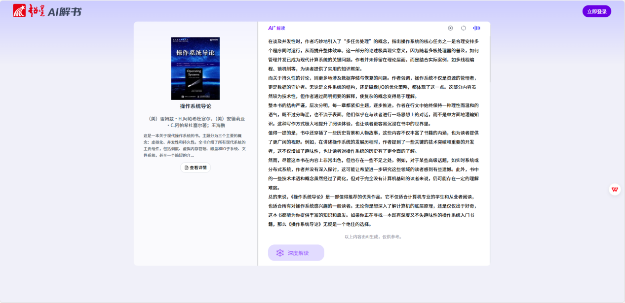 只需输入想看的书名或主题,即可迅速找到所需资源,并提供AI解读功能。