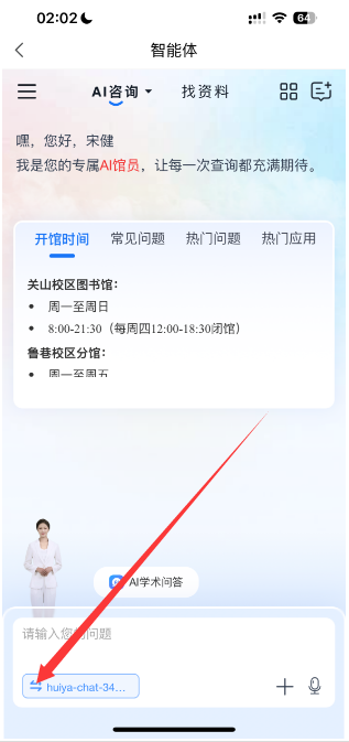 学习通 :输入邀请码 ezu 进入图书馆移动端首页 点击AI馆员即可使用