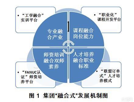 集团建立"融合式"发展机制(如图1所示),落实"企业四进",促进"行业企业参与办学"渗透到教学一线,实现教学链对接产业链,巩固利益纽带,推进集团化办学可持续发展。