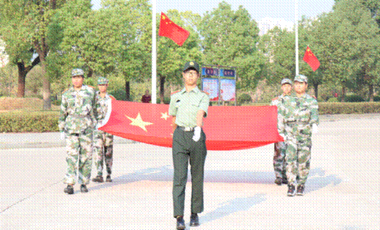 在庄严肃穆的气氛中,国旗护卫队队员迈着整齐有力的步伐,昂首阔步护卫着国旗走向升旗台。400余名身穿军训服的建筑工程学院学子挺拔肃立,向国旗行注目礼,在庄严的国歌声中,五星红旗迎着朝阳冉冉升起。