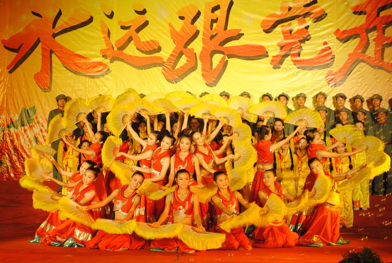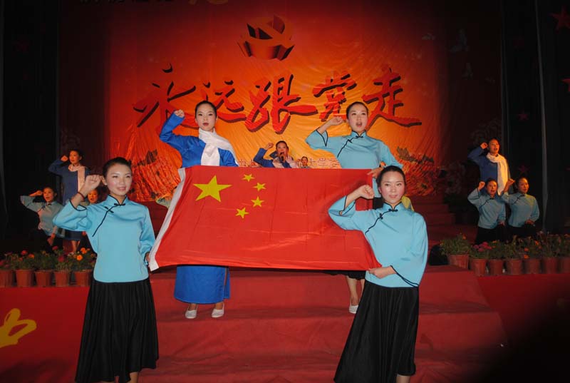 舞蹈《走向复兴》 为热烈庆祝建党九十周年,我校于22日晚在礼堂隆重举行了“永远跟党走——庆祝建党九十周年暨七一表彰文艺晚会”,全体校领导及千余名师生齐聚礼堂,共同祝贺党的生日。大会对我校获得先进基层党组织、优秀共产党员和优秀党务工作者的7个单位和52个个人进行了表彰,并举行了新党员宣誓仪式,同时全体党员起立,和16名新党员共同重温了誓词。 市委宣传部副部长姚再林、市广电局局长夏建国、市直机关工委常务副书记赵德辉也莅临我校晚会现场观看了演出。(文章来源:党办 图片:党办) |