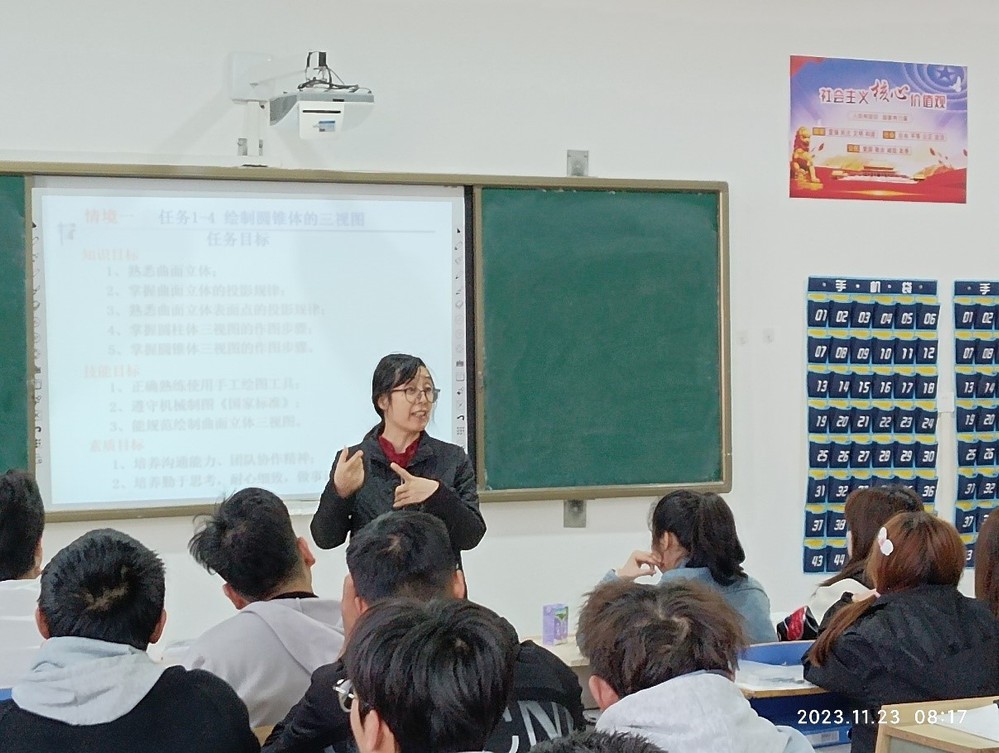 2023年11月23日,工业机器人技术专业开展了以“深耕三尺讲台,传承青蓝薪火”为主题的集中听评课活动。活动中尹红教授为师生上了一堂生动的《机械图样的绘制与识读》课。课后,师生共同对这堂课进行了深入精彩点评。