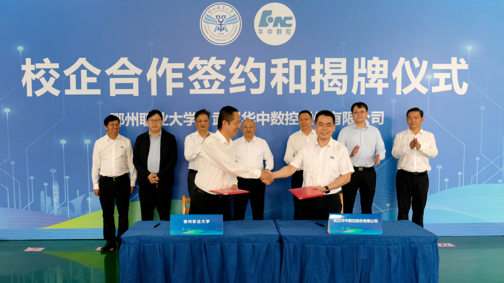 随后,李一丹、邱实一行为“华中数控产业学院”成立揭牌。并见证鄂州职业大学与武汉华中数控股份有限公司签订校企合作协议。
