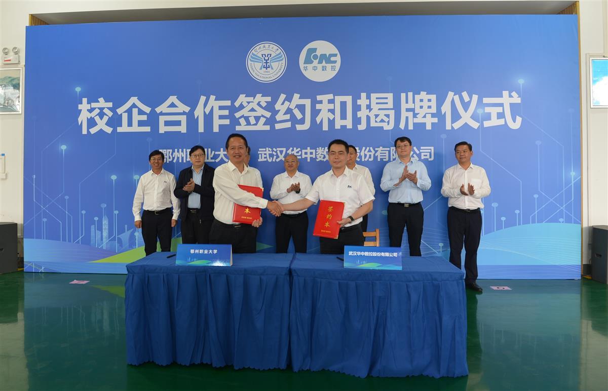 为加快培养智能制造技术技能人才,满足制造业向高端迈进的时代要求,为让学校和企业形成可持续发展的良好态势,技能大赛开幕当天,鄂州职业大学和武汉华中数控股份有限公司开展校企合作签约仪式,并全面建立战略合作关系。随后,“华中数控产业学院”正式揭牌成立。