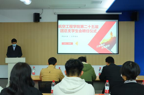 2022年11月25日下午,航空工程学院第二十五届团总支学生会聘任仪式在三号楼创新创业中心圆满举行。本次聘任仪式由学院团总支书记(代理)万前锋主持,学院党总支副书记叶惠君、学院办公室主任李友梅、教研室主任李昶、辅导员黄明、辅导员高铭远参加。参加仪式的嘉宾有校级学生组织和其他学院学生会主要负责人。