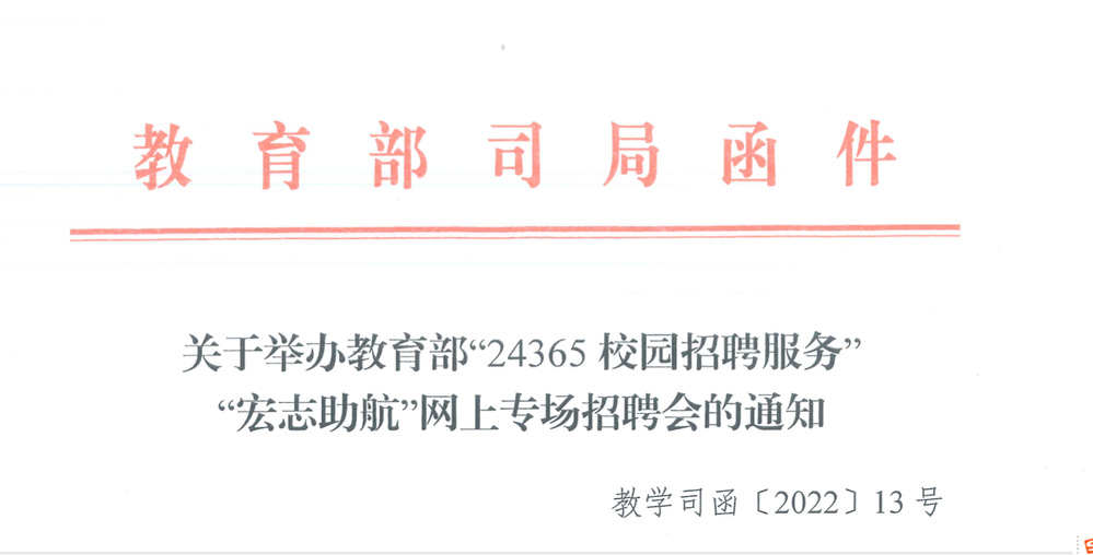 关于举办教育部“24365校园招聘服务”“宏志助航”网上专场招聘会的通知
