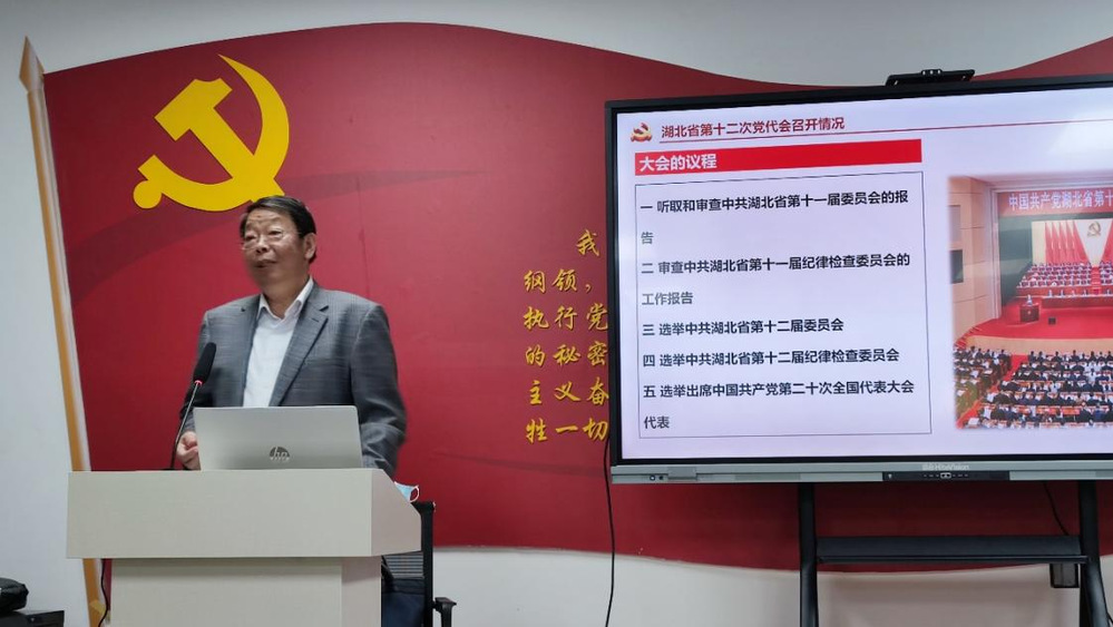 杨殿生带领大家学习回顾了习近平总书记十八大以来历次考察湖北和参加十三届全国人大三次会议湖北代表团审议讲话精神,介绍了湖北省第十二次党代会召开情况,分享了过去五年来湖北工作成就及深刻体会,传达了省十二次党代会精神。
