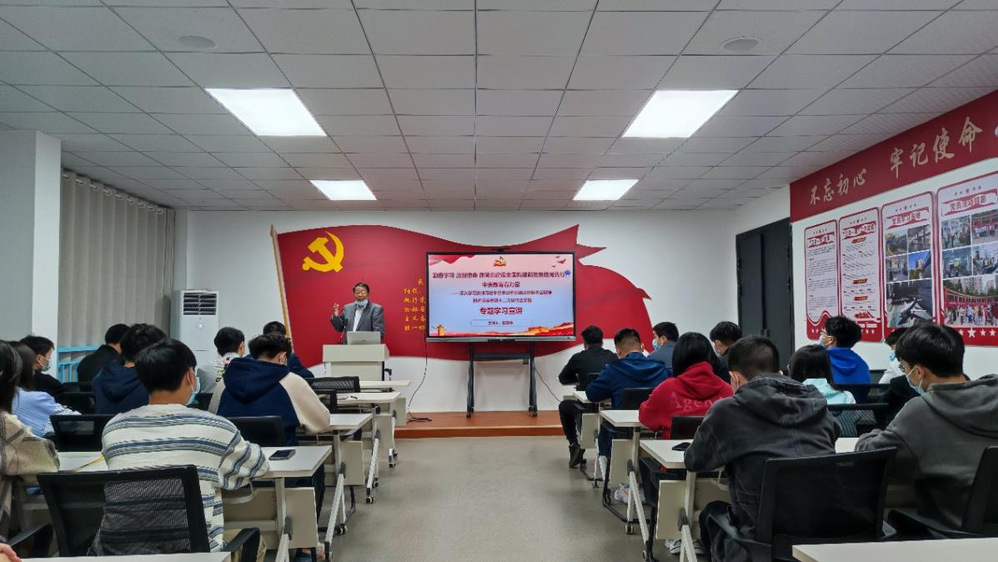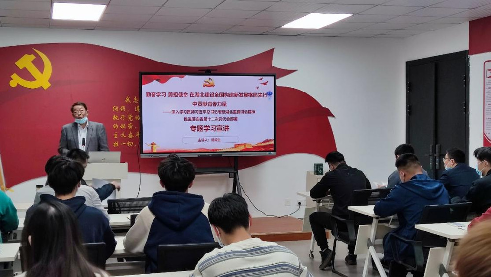 杨殿生以“勤奋学习,勇担使命,在湖北建设全国构建发展格局先行中贡献青春力量”为主题,从“深刻领悟习近平总书记考察湖北重要讲话精神”、“深入学习省第十二次党代会精神”、“切实扛起新时代鄂大学子的使命担当”三部分阐释了习近平总书记考察湖北重要讲话精神,并要求把学习贯彻习近平总书记考察湖北重要讲话精神的行动落在锚定“双高”实干担当,奋力走好新时代赶考路上。