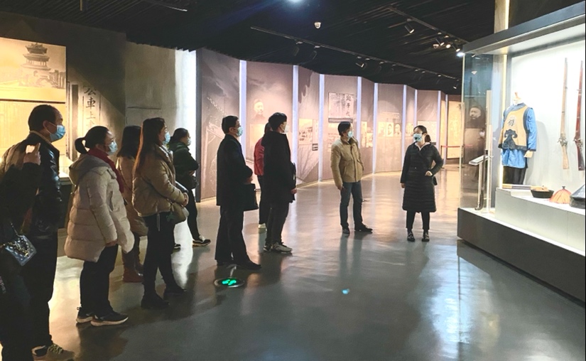 (思政课部教师专心聆听博物馆讲解员讲解)