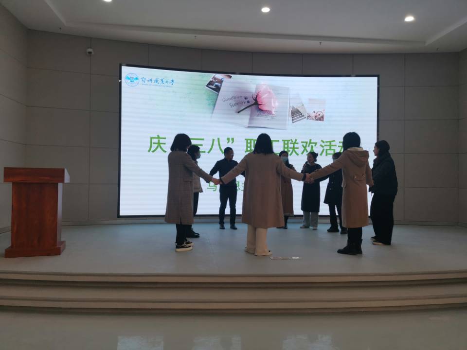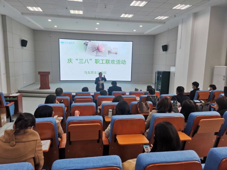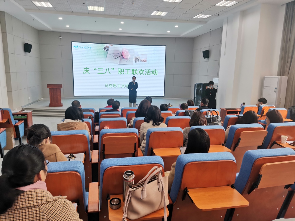 在2022年国际妇女节来临之际,3月3日,马克思主义学院在多功能教学厅开展庆祝“三八”职工联欢活动,学院全体老师参加活动,由何莉老师作为主持人。
