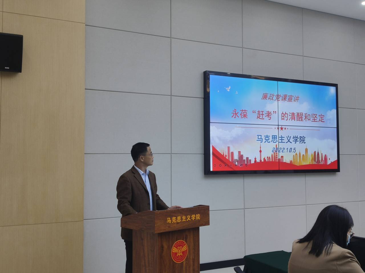 会中,支部书记宋其湖以《永葆“赶考”的清醒和坚定》为题,为参会教师讲了一堂生动的廉政党课。