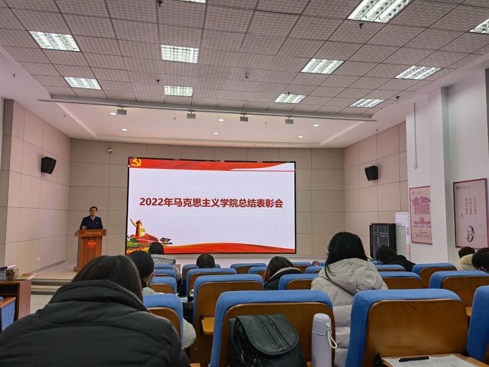 1月6日,马克思主义学院在五号楼一楼守正厅(W102室)召开2022年工作总结暨表彰会。学院书记兼院长宋其湖主持会议,学院全体教师参加会议。