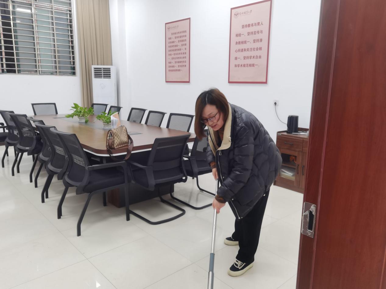 这次卫生大扫除活动由院领导带头,工作安排做到责任分明,合作有序。活动中,教师们认真地打扫了马克思主义学院东西区的走道、阶梯教室、实践教学基地、各会议室和办公室卫生。