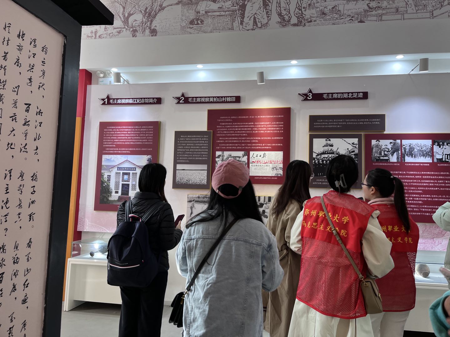 活动伊始,马克思主义学院书记、院长宋其湖进行了简单动员,用自然之美、人类之美、实践之美开启了本次的生态环保活动之行。第一站,师生们来到了毛泽东视察临江纪念馆,1958年9月15日,毛主席从武昌前往黄石视察的途中,途径鄂州时被路边生长旺盛、硕果累累的棉花田所吸引,毛主席下车健步走向农田,仔细察看棉花的生长情况,询问当地农民的生产和生活情况。师生们快速走入纪念馆内,去回忆那段专属鄂州的红色记忆。
