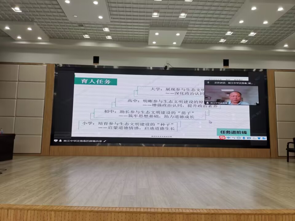 市实验小学教师赵丽围绕“鄂州生态美在哪里 如何守护家园生态美”主题,设置了家乡导览图、家乡建设图、家乡保护图、家乡发展图四个教学环节,点燃孩子们心中建设美丽鄂州的星星之火。汀祖中学教师伍廉瑞以“只此青绿 如何建设美丽鄂州”为主题,通过情景模拟教学,展示鄂州打卡地微拍、梁子湖保护、鄂州新发展愿景画卷,激发学生建设生态文明的积极性。市二中教师王思怡以“美丽鄂州的长江‘大保护’”为主题,展示长江鄂州段治理的对比资料、新闻发布、研学活动资料,动员学生投身生态文明建设的火热实践。华中师范大学马克思学院教师包安从“建设人与自然和谐共生美丽中国”角度,通过生态文明的变迁史、创新史及生态文明青年行理论研讨活动,增强大学生建设美丽中国的使命担当。