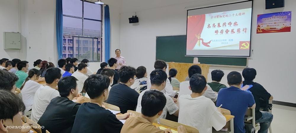 5月25日晚,马克思主义学院教师桂捷给机械工程学院学生干部和优秀学生代表60人宣讲党的二十大精神,宣讲以“立志复兴伟业 踔厉奋发前行”为主题,从永载史册的伟大变革、引领复兴的宏伟蓝图、笃行不怠的战略定力三个方面,全面解读二十大精神。