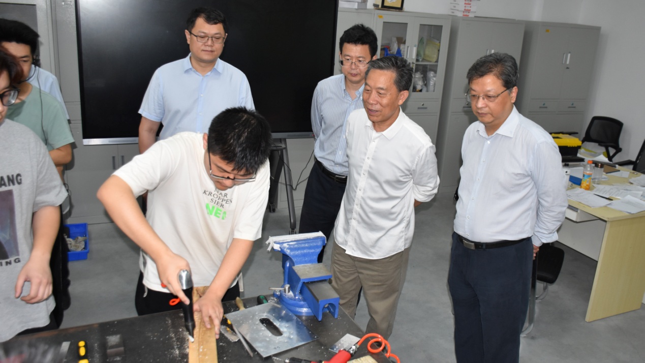 王松涛一行在校党委书记万国光、校长何保华、市政协副主任熊金林等人的陪同下,依次参观了我校马克思主义学院、航空工程实训中心、国家建筑技术实训中心,详细了解了我校人才培养和产教融合推进情况,并就职业教育国际合作进行了探讨和交流。