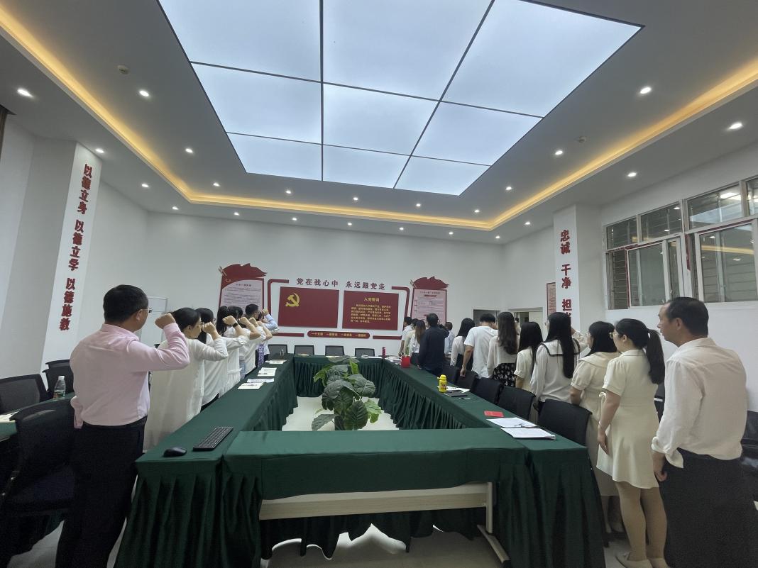 活动伊始,吴冠勇同志领誓,全体党员教师集体宣誓,重温入党誓词;向锦明同志领读《党章》第二章第十条至第十八条的内容;柯雁同志通报党员交纳党费情况。
