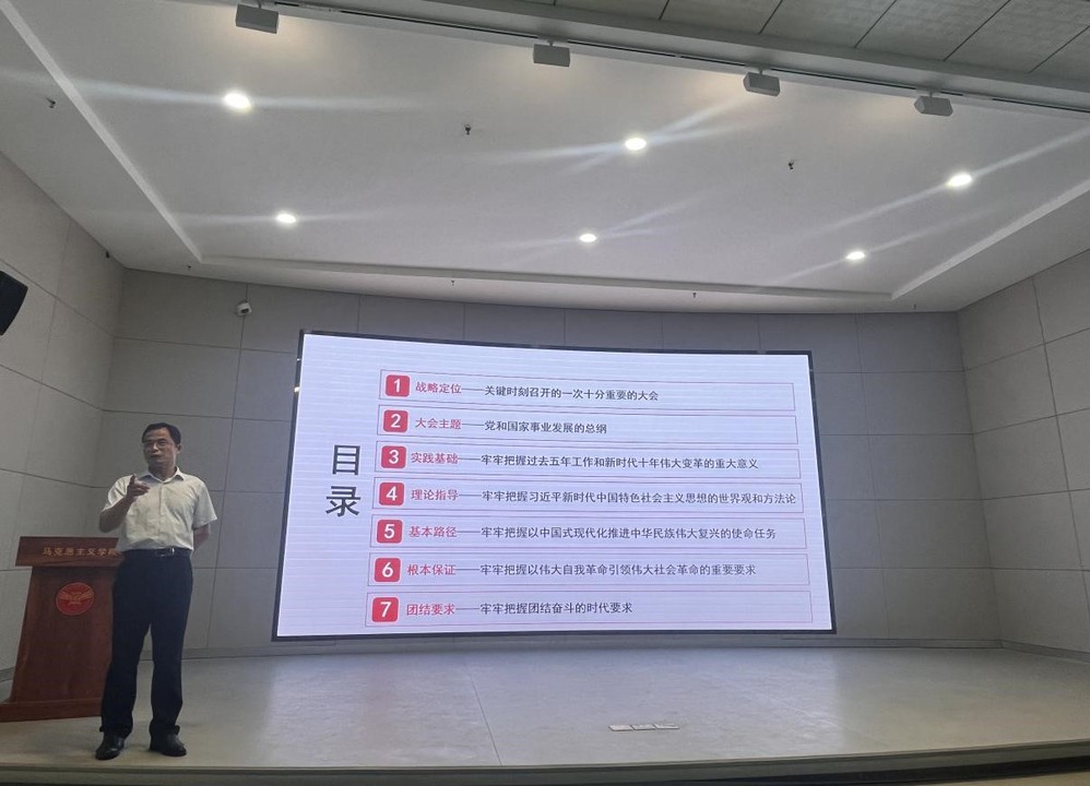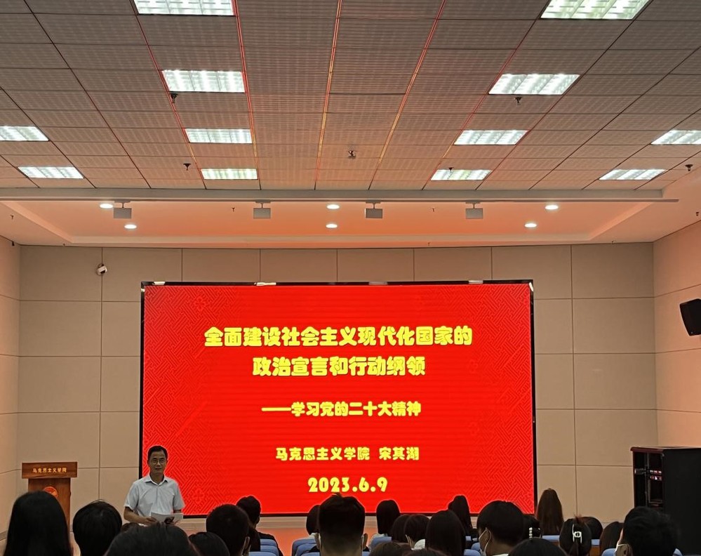 为深入学习宣传贯彻党的二十大精神,引导我校广大青年学生全面、准确、深刻地理解党的二十大精神实质、精髓要义,推动党的二十大精神在青年学生中落地落实、开花结果。6月9日下午,我校马克思主义学院书记兼院长宋其湖在五号楼W102多功能教学厅开展了二十大精神宣讲活动,来自建筑工程学院、医学院、艺术学院及思政实践教学团的100余名青年学生参加宣讲会。