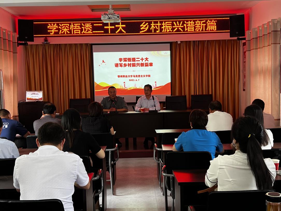 听取完叶宏书记的汇报后,马克思主义学院书记院长宋其湖为我们讲了一堂生动的主题党课《学深悟透二十大,乡村振兴谱新篇》。首先,宋书记充分的肯定了工作队在棠树岭村的工作成效,高度赞扬了叶书记为首的工作队“工作很有思路、很有‘套路’、展现发展新路、未来必有出路”。接着从三个方面给我们论述了实现乡村振兴的现实路径:1、民族要复兴,乡村必振兴。强调了乡村振兴对于实现中华民族伟大复兴中国梦的重要性,引领我们从思想层面要高度重视乡村振兴工作。2、乡村振兴,关键在人。要让留在乡村的人,不仅要留得安心,更要留得有信心。要让各类人才在农村的广阔天地里,能够大施所能、大展才华、大显身手。3、农民增收、关键靠产业。通过因地制宜发展当地特色产业,实施差异化发展规划,通过特色产业帮助农村增收,留得住人。