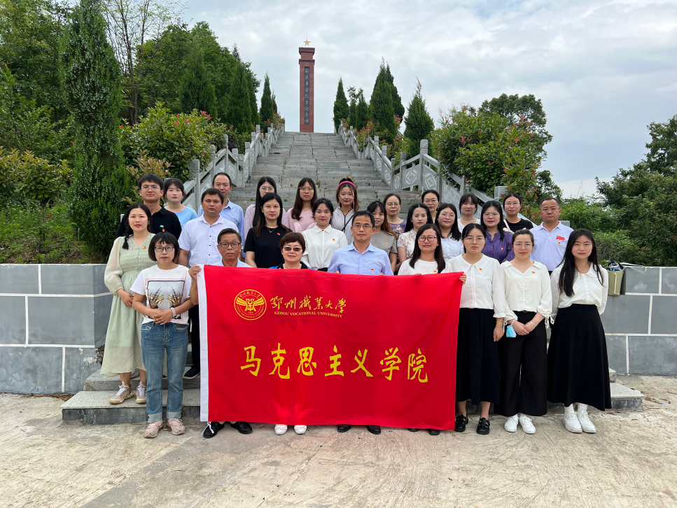 是的,这也是我们此行的主要目的之一便是,要深入学习贯彻党的二十大精神,推动习近平新时代中国特色社会主义思想走深走实,常态化开展党史学习教育,缅怀革命先烈,弘扬革命精神。为此,全体党员教师和实践团学生,在纪念碑前默哀一分钟悼念逝去的革命先辈,认真听取讲解员讲解他们的英勇事迹。这片红色热土上的感人事迹也激励着老师和学生们,要将这种不畏牺牲,勇于奉献,舍己为人的精神细化到在今后的工作和学习中,让他们的精神能够在今天得以继续传承和弘扬下去,生生不息。