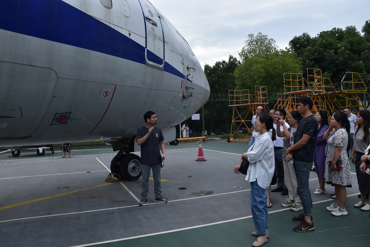理论学习交流结束后,开了校内外的实践教学。全体与会人员在马克思主义学院青年教师张丹及航空工程学院实训基地主任李昶老师的带领和讲解下,先后参观了马克思主义学院的思政课实践教学基地和航空学院的实训基地。