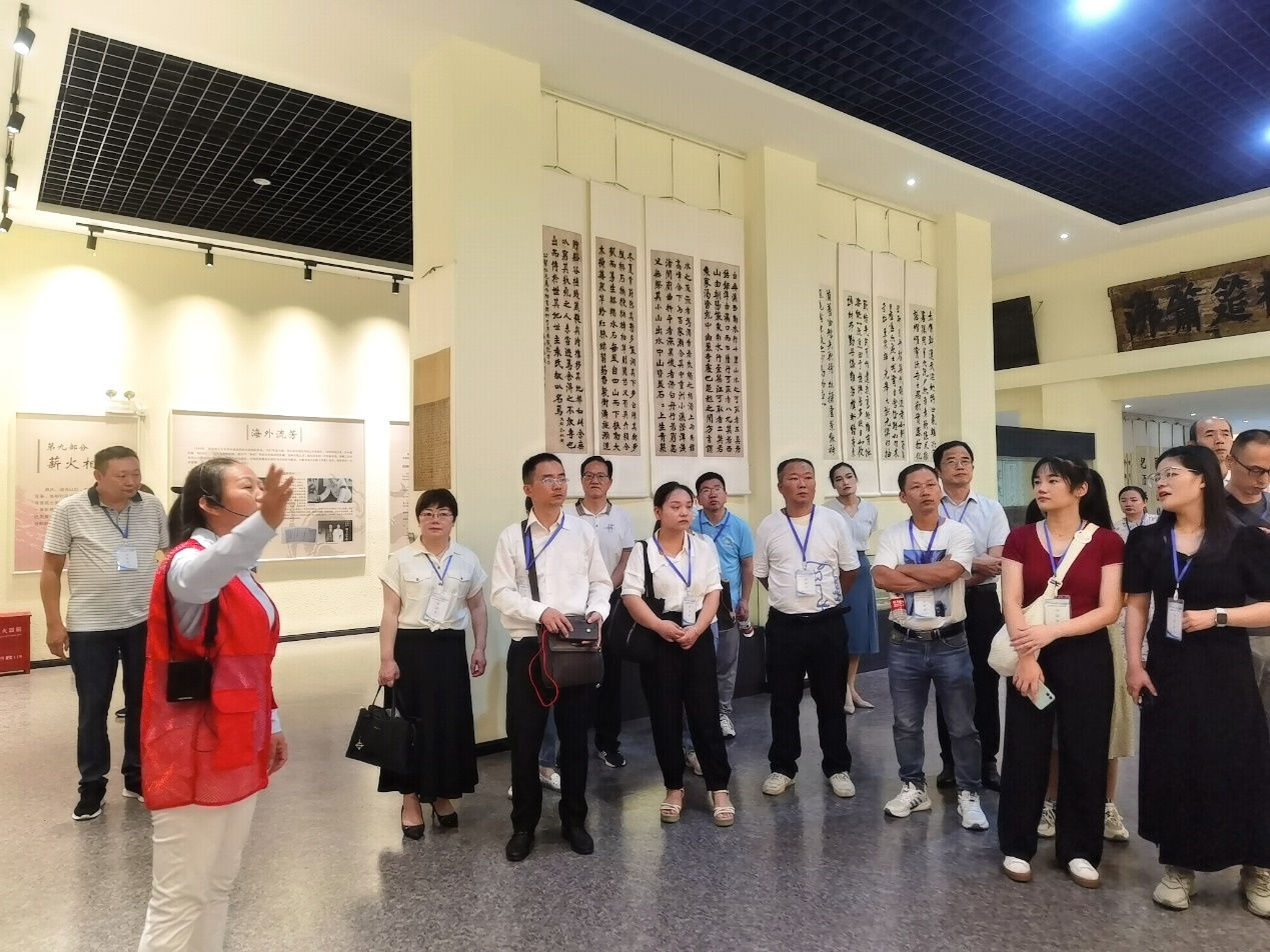 活动第二天,一行人奔赴张裕钊文化园、农科村、万秀村开展校外实践研学。在张裕钊文化园,讲解员详细介绍了张裕钊生平,作为曾门四子之一的张裕钊,在清末民初动荡岁月中,他潜心教育、文学,力图重振中华文脉,其书法被康有为誉为“千年以来无与比”的书法家,成为碑学书法的一代宗师,影响力广播海外。这座文化园汇集着张裕钊文史馆、张裕钊书法碑廊、张裕钊书法流派碑林、廉卿塔、民俗馆、生态园等众多处参观点,每一处都展示着书法文化的优美大气,让老师们感受到了张裕钊先生深厚的人文历史文化。