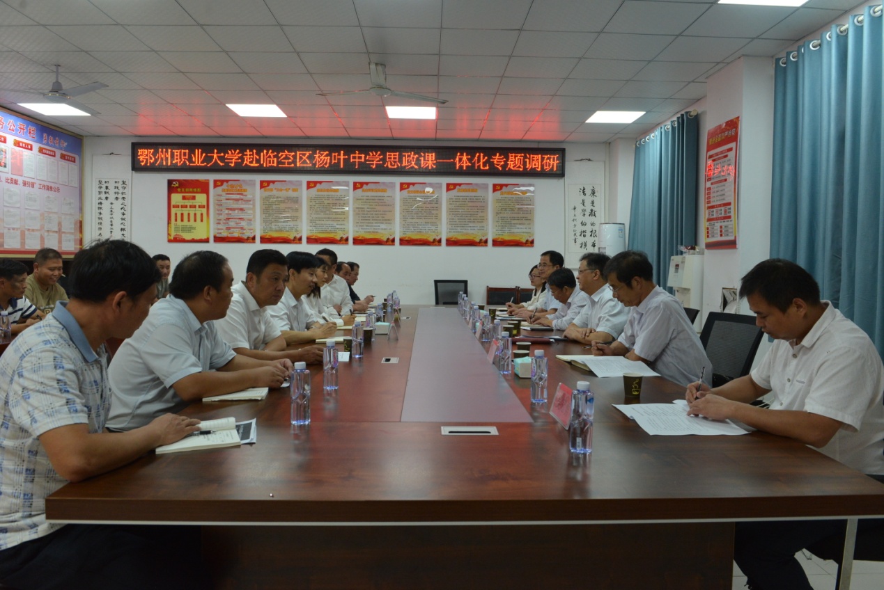在杨叶中学,学校负责人就学校概况、师资队伍、思政课程建设等方面进行了汇报,调研组一行与学校思政课教师代表进行了座谈交流。