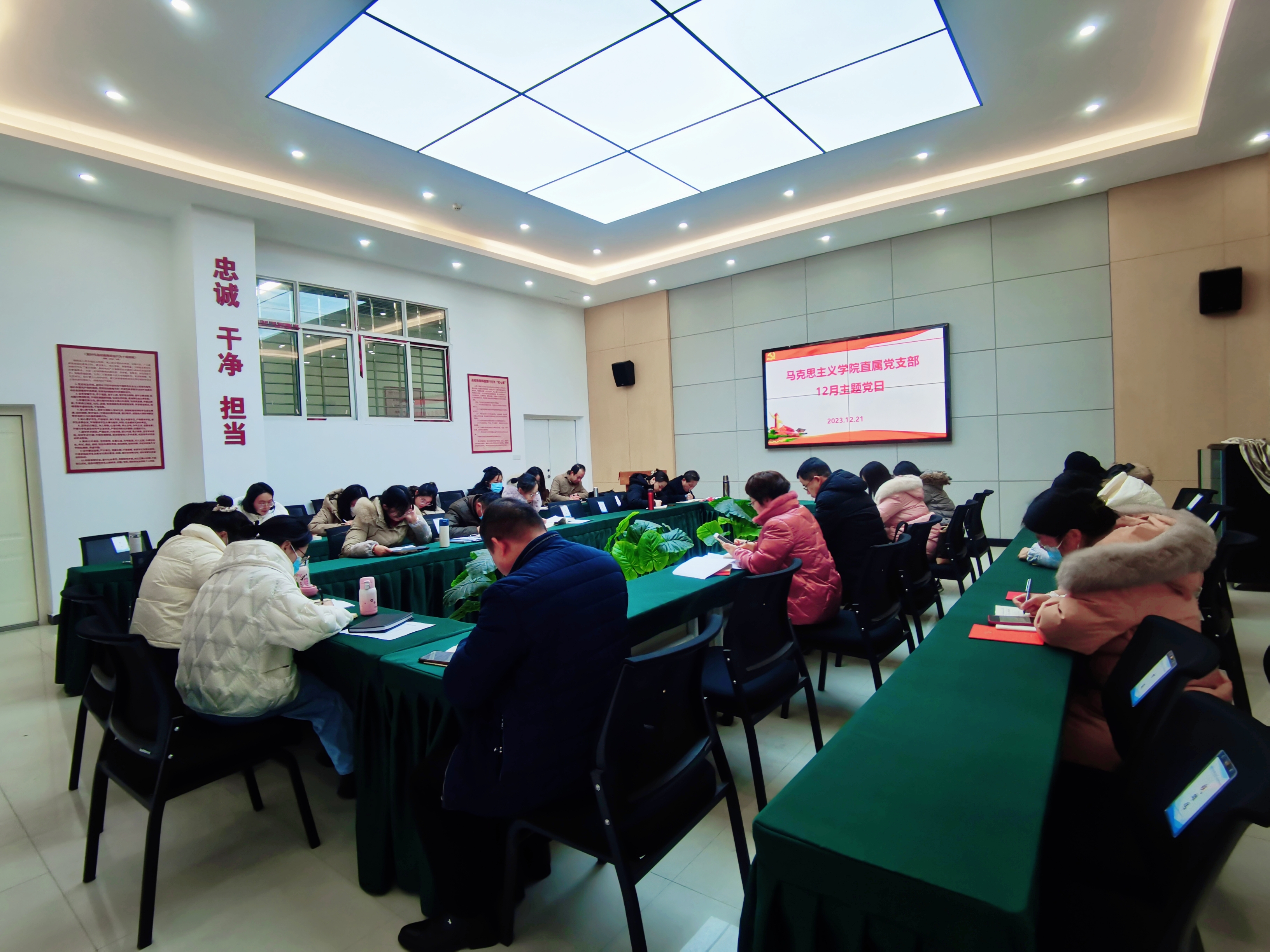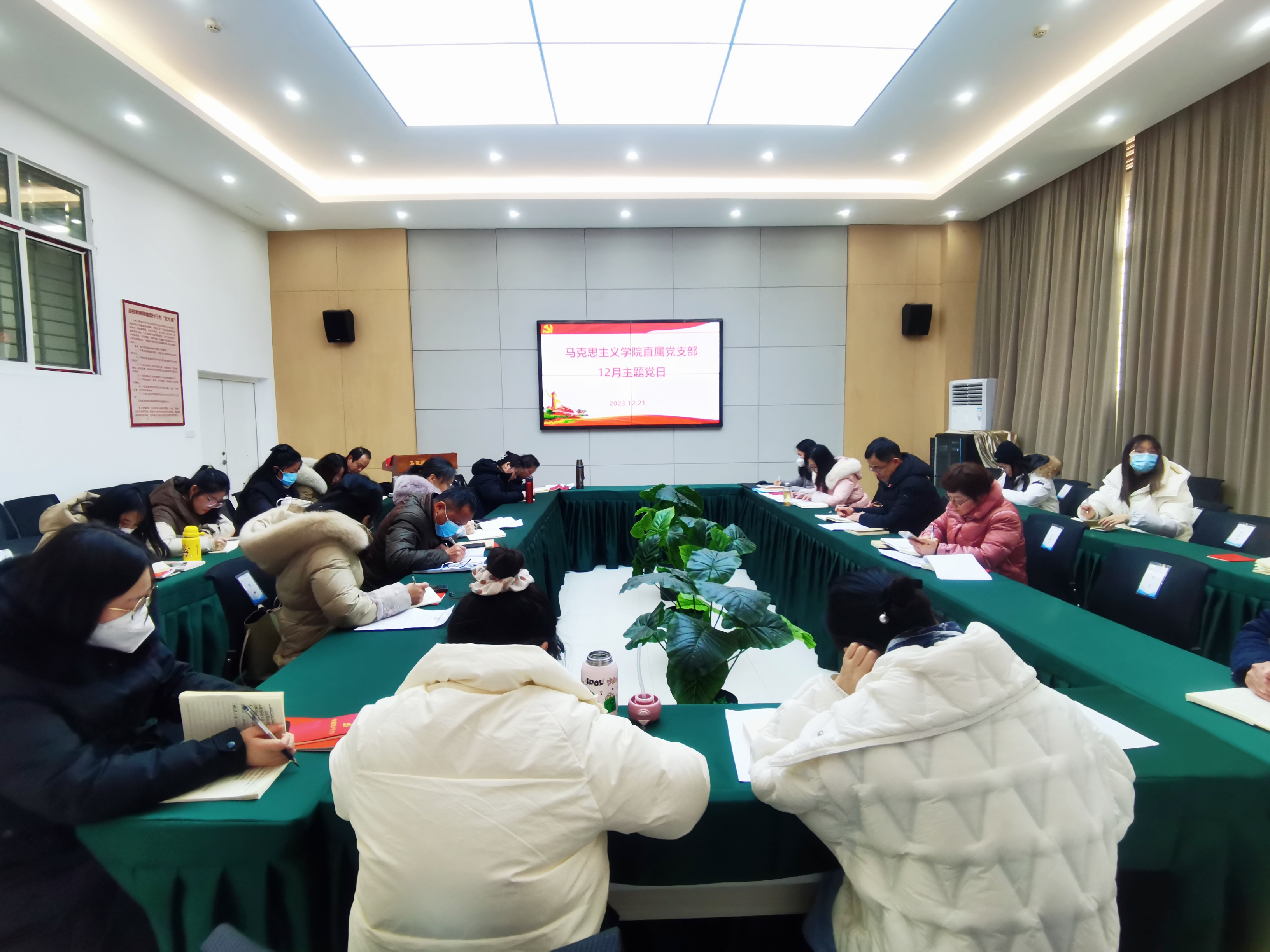 2023年12月21日,马克思主义学院直属党支部开展“勇担重任以学促干 总结谋划再建新功”支部主题党日活动。马克思主义学院副院长吴寒梅同志主持此次活动,全体党员教师参会。