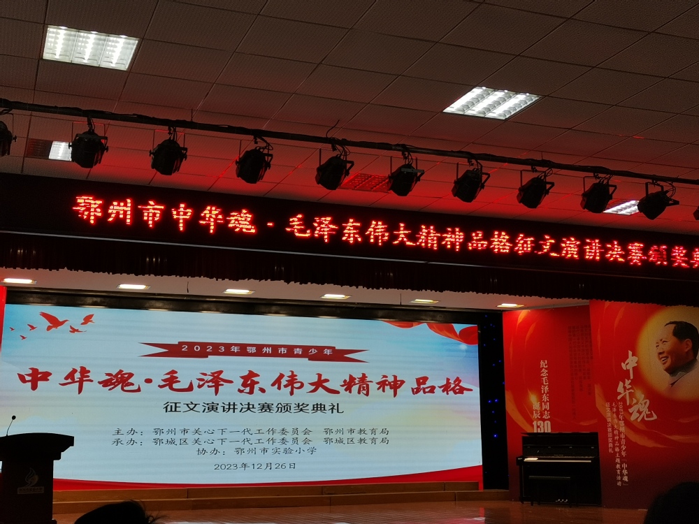 12月26日,鄂州市青少年“中华魂”——毛泽东伟大精神品格主题教育征文演讲决赛颁奖仪式隆重举行。