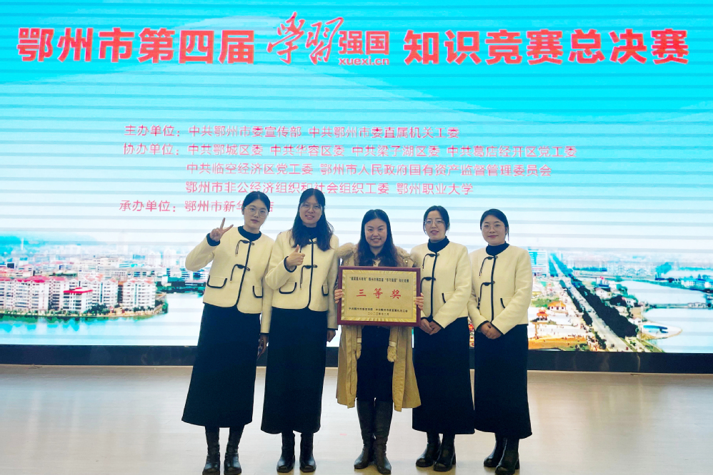 12月25日,全市第四届“学习强国”知识竞赛总决赛暨颁奖典礼在临空经济区举行。经过激励的角逐,由马克思主义学院袁琦、王贝、夏婷、胡欢欢等4位老师组成的学校代表队凭借丰富的知识储备和过硬的理论素养斩获三等奖。