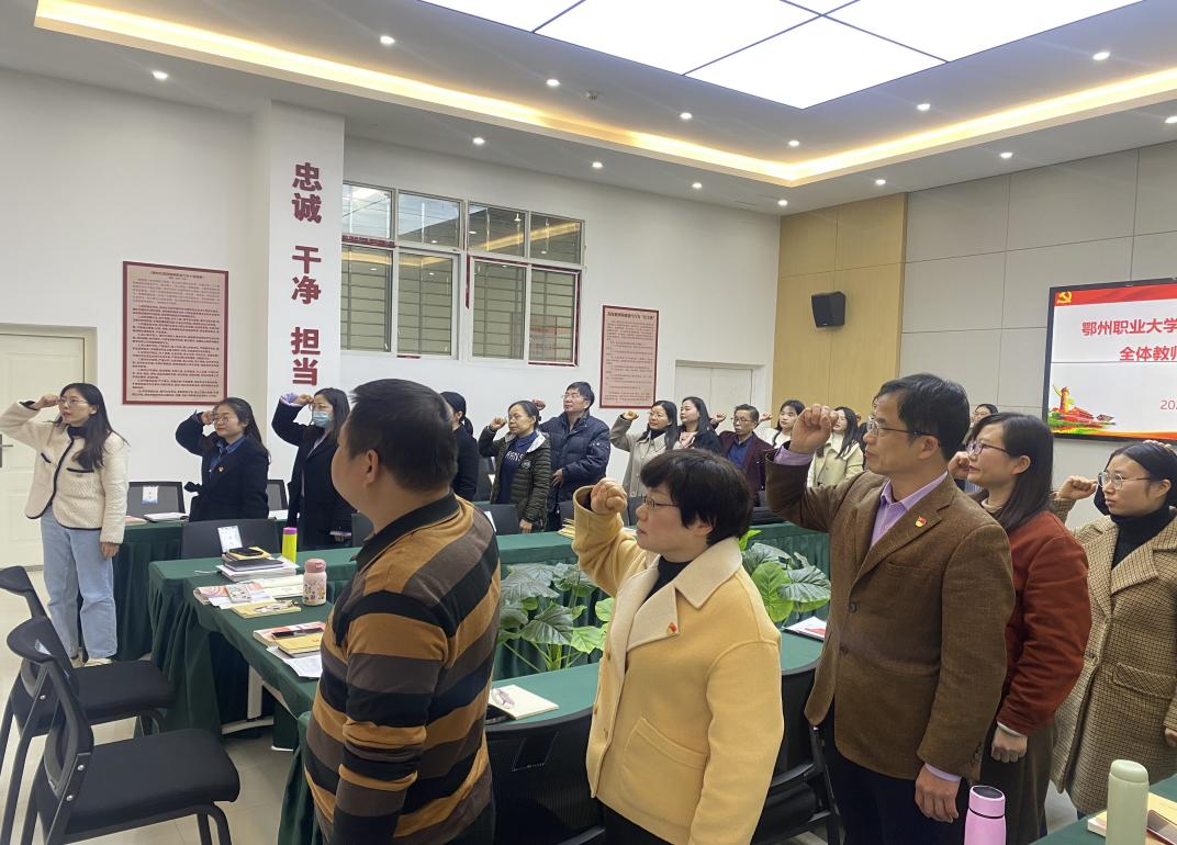 首先,秦慧慧同志领誓,全体党员教师集体宣誓,重温入党誓词;吴婷同志领读《党章》第章的内容;柯雁同志通报党员交纳党费情况。