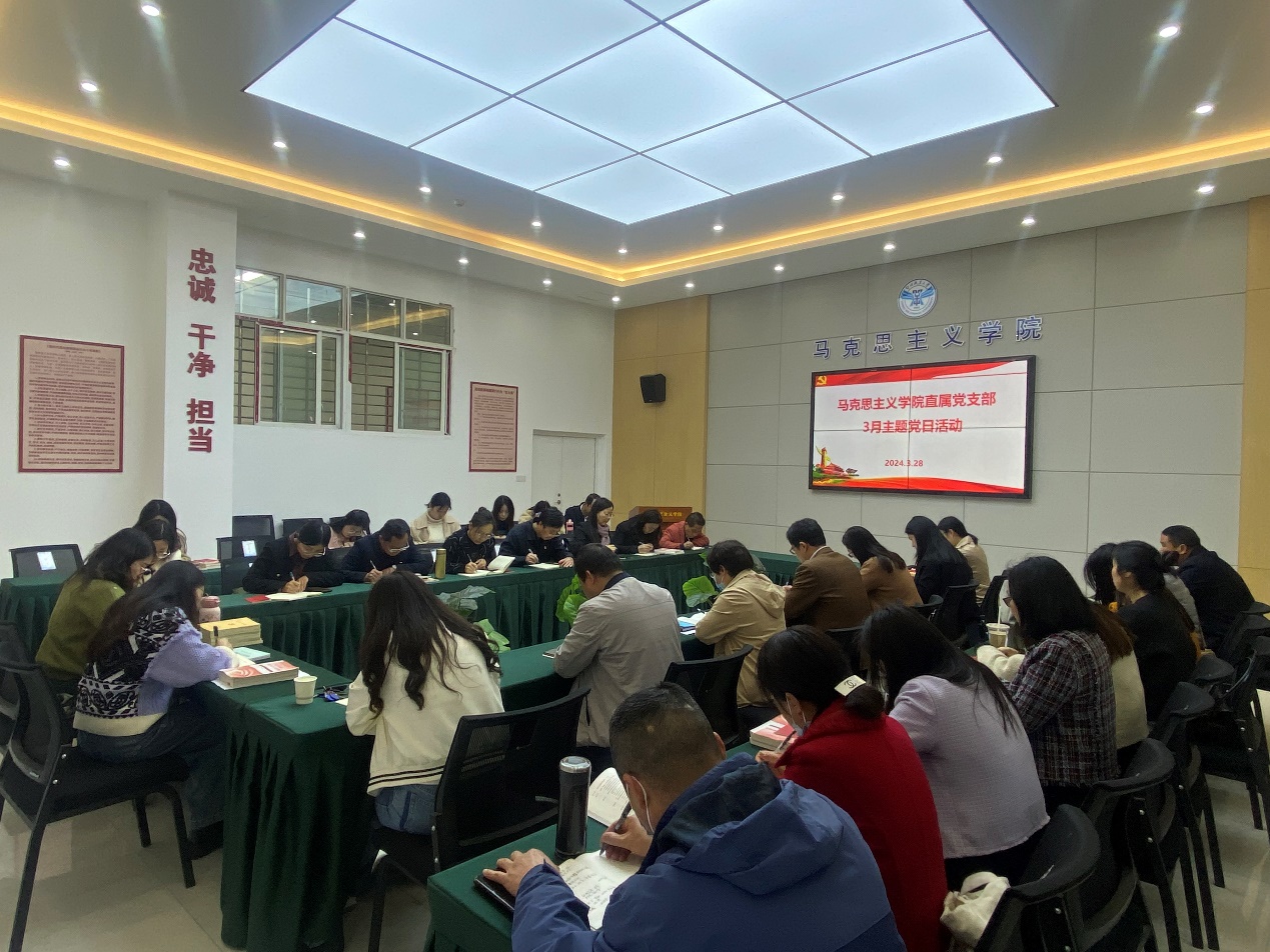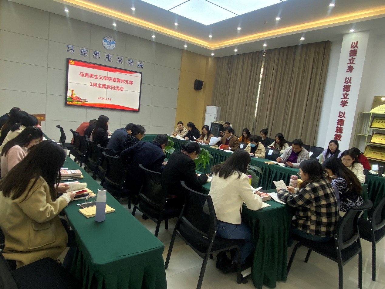 2024年3月28日,为引导全体党员干部教师学纪、知纪、明纪、守纪,推进纪律教育的常态化,马克思主义学院直属党支部开展“认真开展学习工作 坚守党员纪律底线”支部主题党日活动。马克思主义学院教师张攀攀同志主持此次活动,全体党员教师参会。