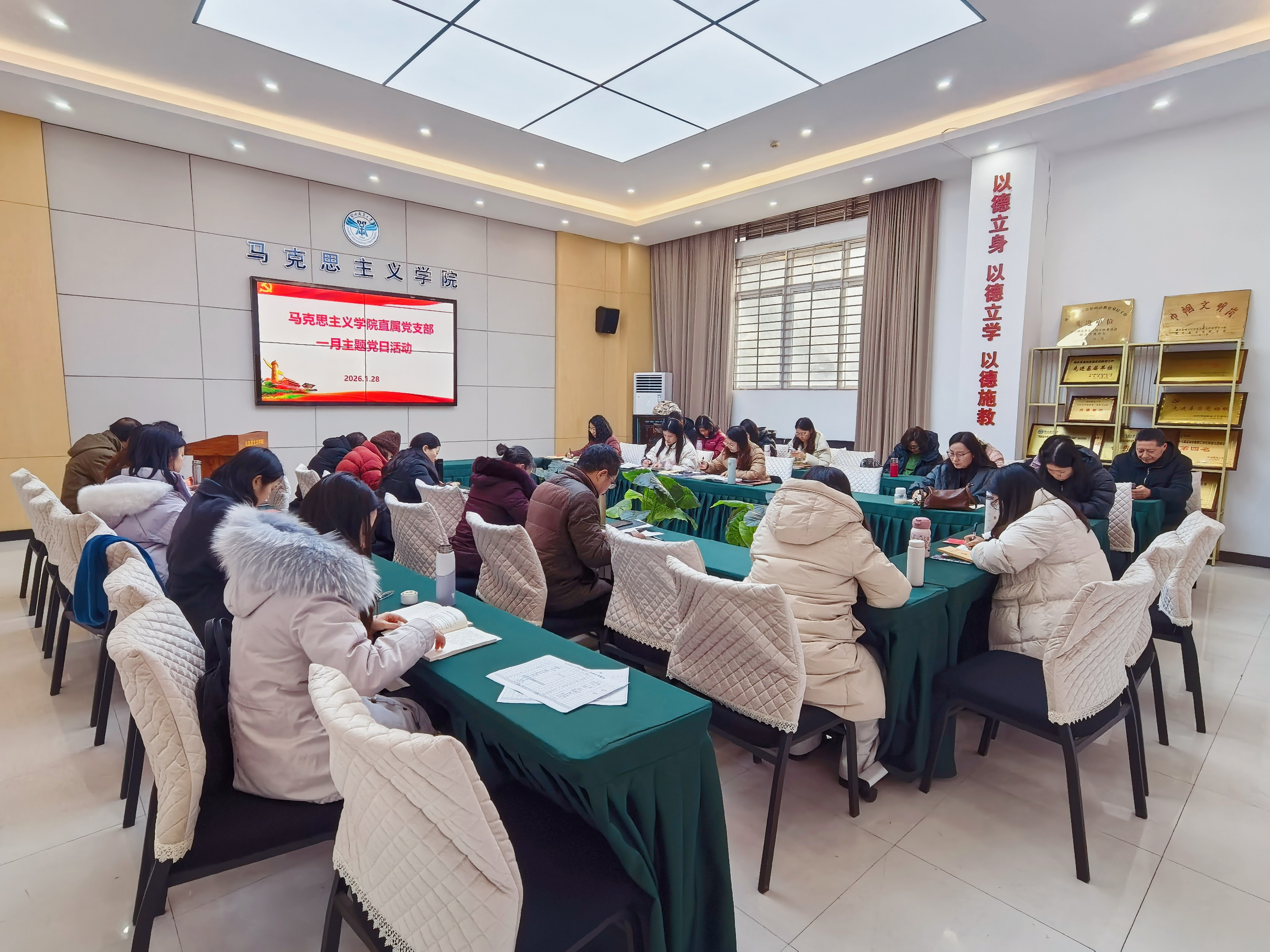 1月28日,马克思主义学院直属党支部开展了1月份主题党日活动。本次活动以“锚定目标任务,扎实推动高质量发展”为主题,紧扣2026年“十五五”开局之年发展要求,旨在通过系统学习、深入交流,引导党员强党性、强素质、强担当、强作为、强纪律,为“新双高”以及职业本科申建贡献先锋力量。活动由马克思主义学院副院长(主持工作)吴寒梅主持,全体党员教师积极参与。
