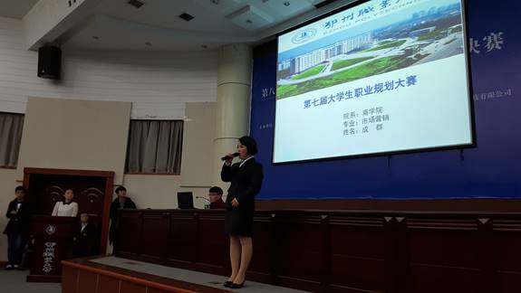 2015年12月28日下午七时,第七届大学生职业规划大赛总决赛暨颁奖典礼在我校图书馆学术报告厅举行,我院2015级连锁经营管理专业洪晓庆和2015级市场营销专业成群分别荣获一等奖和二等奖。