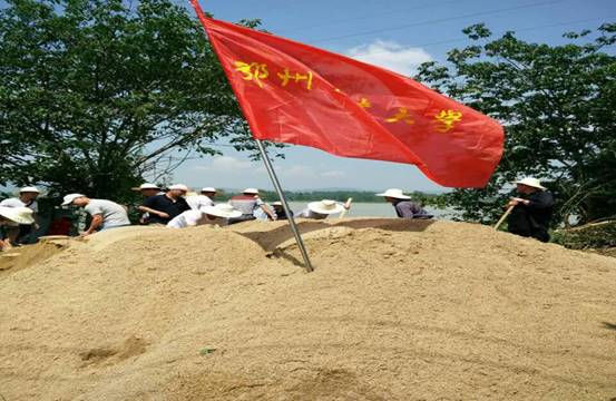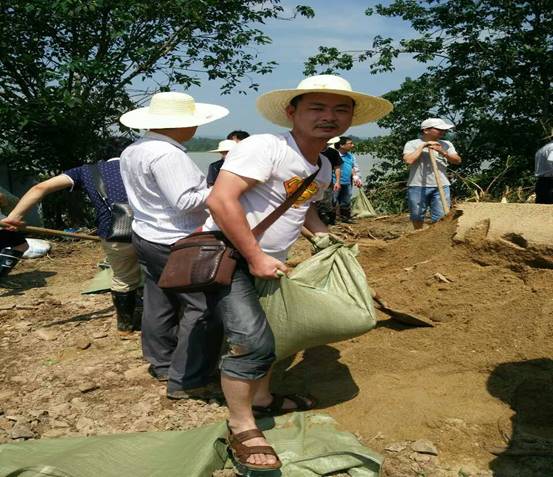 7月8日上午9时,我院党员老师黄文平、熊学春、骆昌海、安博在院党总支书记方明亮带领下,和学校其他25名党员突击队员一起赶往太和镇新建村刀口南洼堤段进行防汛抗洪工作,巡堤、备料,装填泥土和沙袋、扛运,大家足足奋战一天一夜,直到次日(7月9日)上午9时才返回。