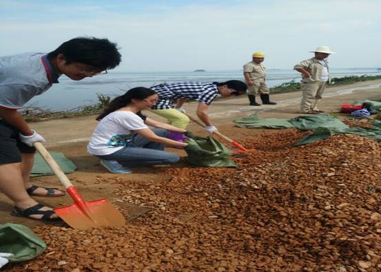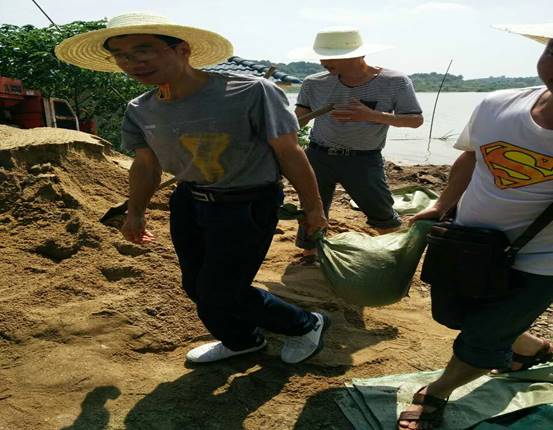 7月7日早上7时,我院朱亚平副院长、支部书记刘青娥和周晓兰带领党员教师李树林、何波涛、熊晓丽、邵洵和非党员教师王涛,赵静,胡小燕,王国红等教师赶往梁子湖太和镇抗洪抢险。在炎炎烈日之下,大家干的热火朝天,汗水浸湿了沙土,刚做完手术时间不长的何波涛老师也顶着骄阳跟着大家一起装沙袋、扛沙袋,连续奋战后脖子晒伤脱了一层皮,也无分毫怨言。平时爱红妆的女教师虽然是第一次参加抗洪抢险活动,但是现学现用,迅速投入工作中,巾帼不让须眉,做起来也一点不含糊,一直工作持续到下午13时30分才与大部队一起收工返校。