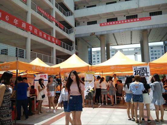 6月6日,商学院2016届毕业生专场招聘在三号教学楼隆重举行,来到现场参加双选会企事业单位有中国平安(上海)集团、光大电子银行、北京农商银行、武汉百捷集团投资管理有限公司、湖北海云电子商务有限公司、太平洋保险在线服务科技有限公司等55家。据统计,有420多名2013级学生向招聘单位递交自荐信和个人简历,并与招聘人员进行深入交流,主动了解用人单位的招聘要求和录用信息,积极展示自我形象;有200多名2014、2015级学生向招聘企业进行了就业咨询,提前了解就业形势,感受择业氛围。本次现场实际签约82人。