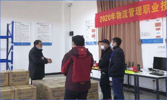 124日下午校党委委员、副校长杨殿生带队,职业鉴定中心主任姜学文、学工处处长陈永红、商学院党总支书记方明亮等亲临物流管理“1+X”考场视察考试准备工作。杨校长强调考试组织工作要满足疫情防控整体要求,做好各项防护措施的同时,也要加强考试纪律不放松,确保考试规范性和严肃性,确保考试顺利进行。