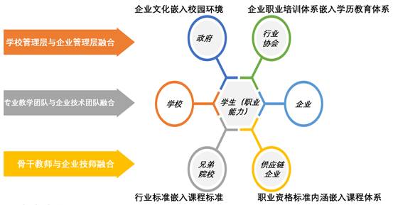 图2 “多元互动、三级融合、四个嵌入”的人才培养模式
